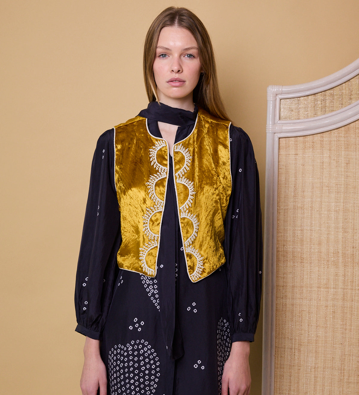 SUNFLOWER VEST, CHARCOAL SILK VELVET