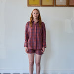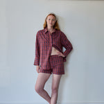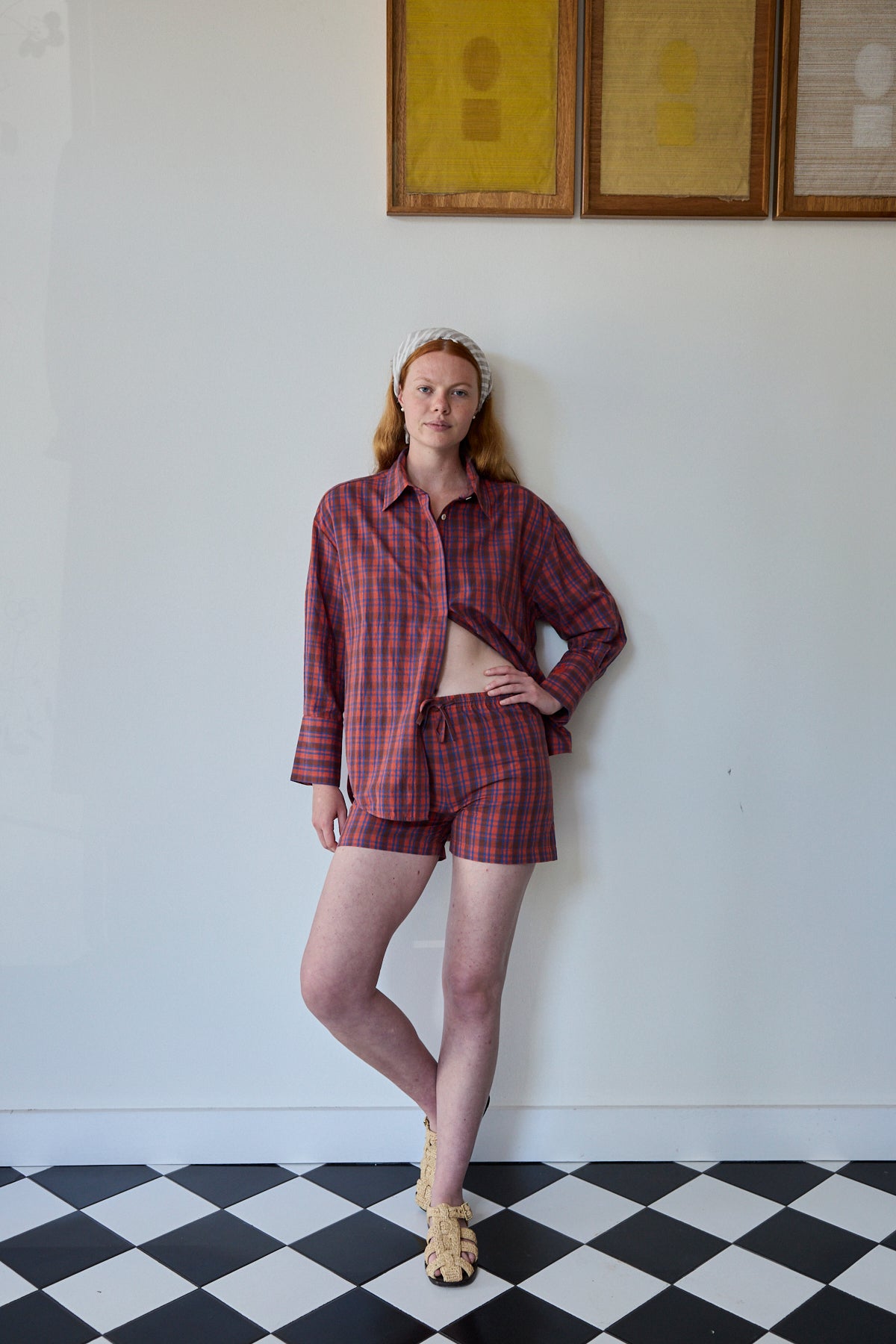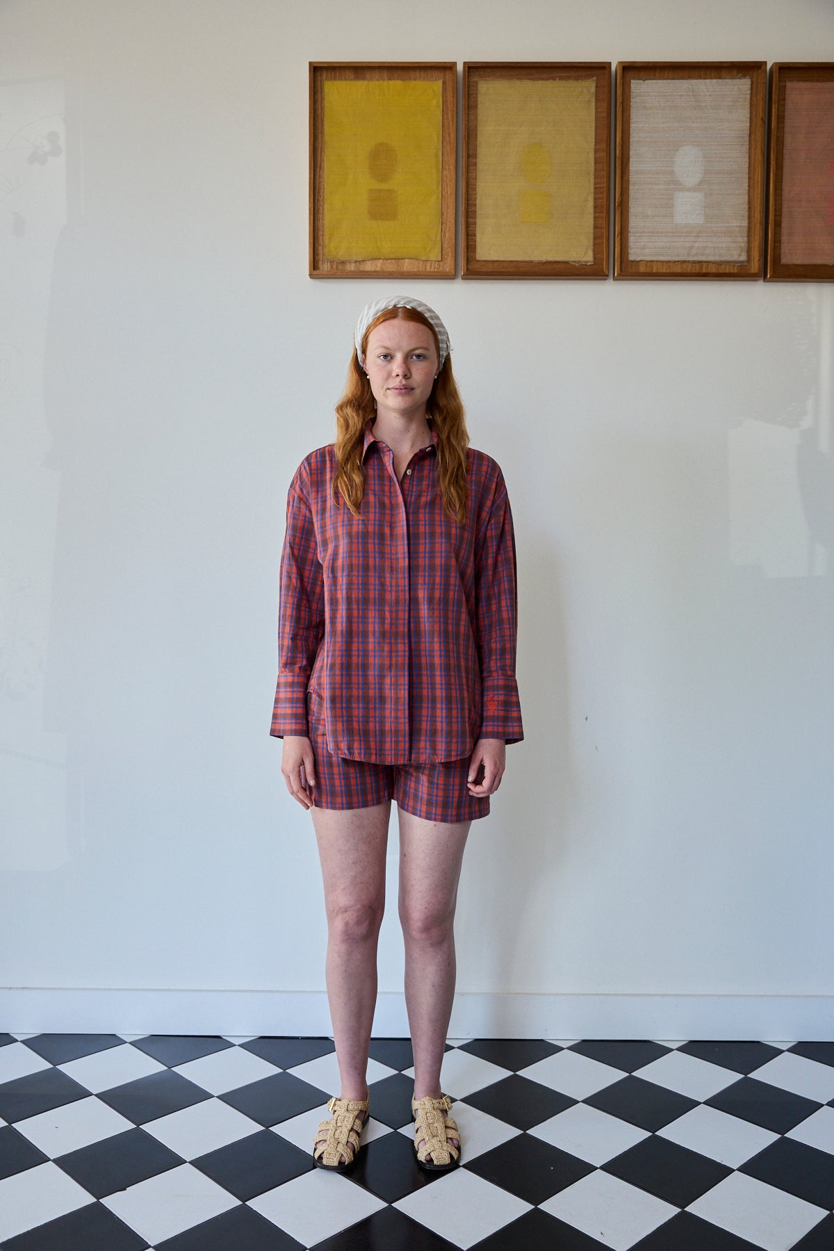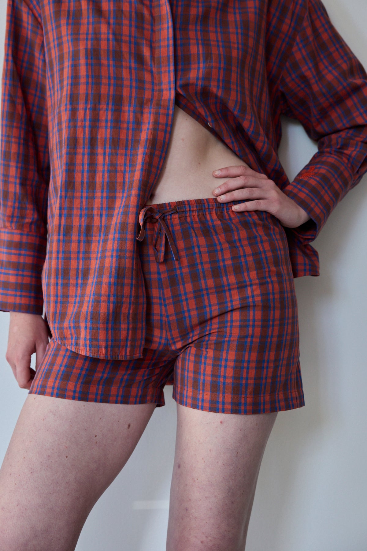 SCARLET SHORTS, CRIMSON RED // ROYAL BLUE CHECK COTTON